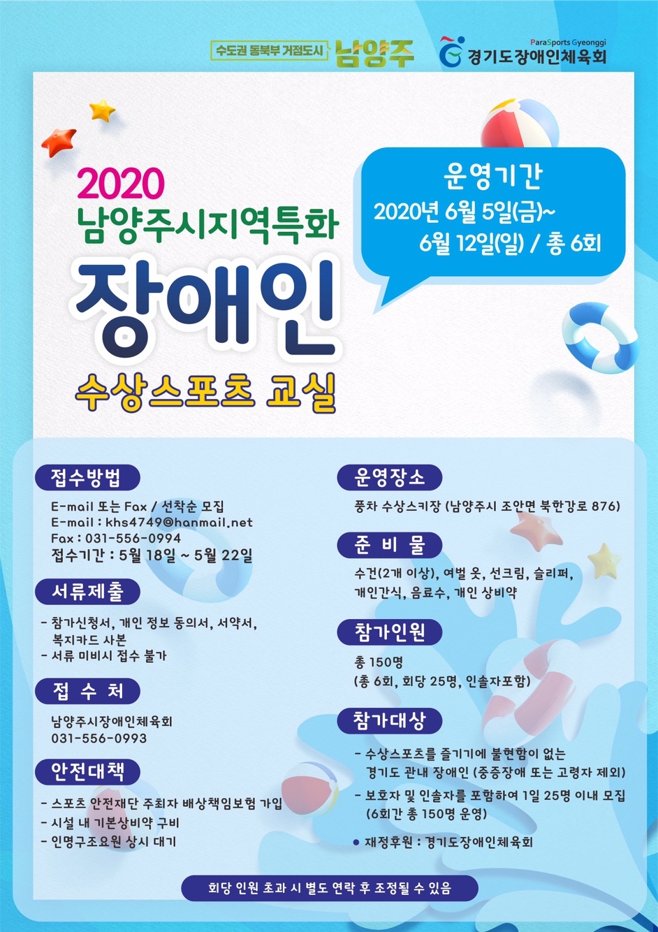 2020 남양주시 장애인 수상스포츠 교실 안내 (잠정연기)
