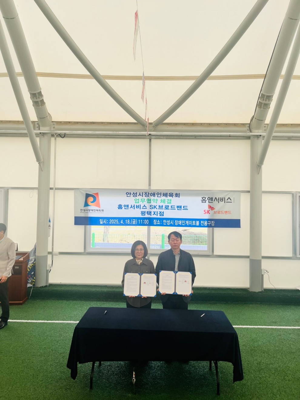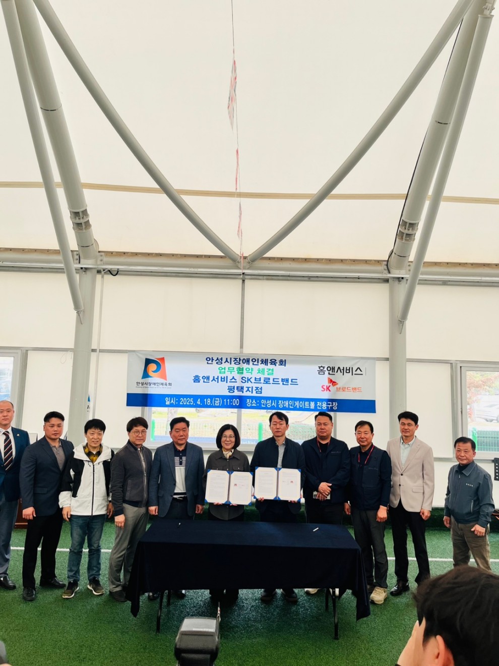 홈앤서비스 SK브로드밴드 평택지점 업무협약 페이지 정보 작성자작성자 : 관리자 조회조회수 : 1,096회 작성일작성일 : 25-05-09 10:29 본문 2025년 4월 18일 (금) 안성시장애인체육회 와 홈앤서비스 SK브로드밴드 평택지점업무협약 체결 목록 이전글제15회 경기도장애인체육대회 2025 가평 안성시 선수단 출전 25.05.09 다음글제18회 경기도장애인생활체육대회 2024 성남 24.10.18